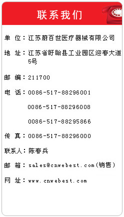 聯系人:陳春兵 地址:江蘇省盱眙縣工業園區迎春大道5號 郵編:211700 互聯網藥品信息服務資格證書號:(蘇)-非經營性-2023-0029 醫療器械投拆舉報電話:12315 電話:0086-517-88296001 88296008 0086-517-88295866 傳真:0086-517-88296000 網址:www.cnwebest_com.jkfo.cn E-mail:sales@cnwebest_com.jkfo.cn(銷售) 后臺管理 郵箱登錄 備案號:蘇ICP備17002214號-1 |